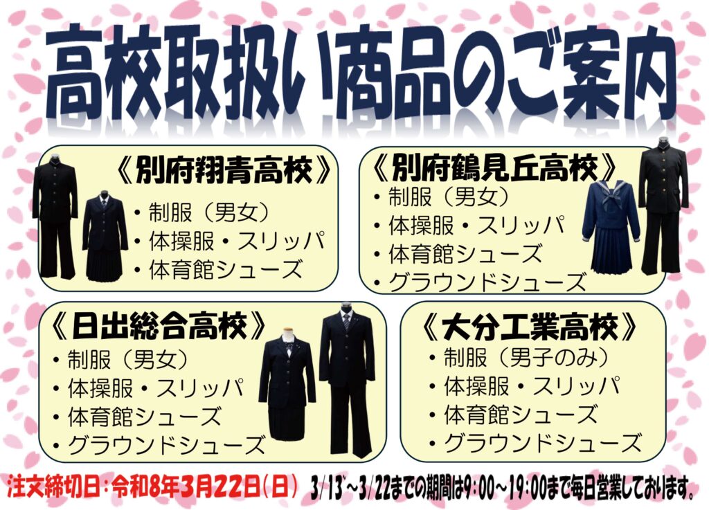 制服・体操服・グランドシューズ・体育館シューズ・スリッパ・通学用ヘルメット